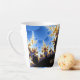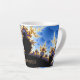 Cette tasse en latte présente de belles oeuvres fractales - le fameux Mandelbrot ensemble en bleu, noir, orange et blanc. Cet art fractal coloré et symétrique est un grand cadeau pour tous les amants fractaux et les mathématiciens. Le texte personnalisable en bas est dans une teinte orange similaire.