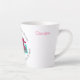 Cette tasse à café en latte présente un design circulaire avec les mots "La maison est pour ceux qui ne savent pas coudre" avec un dessin stylisé d'une machine à coudre vintage rose et gris brillant au centre. Il peut être personnalisé avec votre nom, et est un charmant tasse amusant pour quiconque coud.