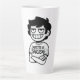 Latte Mug avec dessin humoristique audacieux en noir et blanc, illustration d'un personnage au grain espiègle et aux yeux tranchants et sarcastiques. Le personnage a des cheveux un peu désordonnés et porte un T-shirt qui proclame fièrement, "MAÎTRE DE SARCASM" en caractères gras. Leurs bras sont croisés en toute confiance, mettant l'accent sur un comportement ringard et assuré. Le design épuré et minimaliste en fait une pièce qui attire le regard.