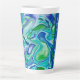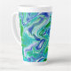 Tasse Latte Marbre bleu et vert Fluid Art personnalisé
