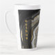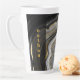 Grande tasse en latte personnalisée avec design en marbre noir et or. Le modèle est configuré pour que vous ajoutiez votre nom, dans une typographie moderne et audacieuse, verticalement sur un côté de la tasse sur un panneau sombre semi-opaque.