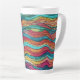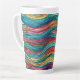 Cette conception abstraite mêle la fluidité des vagues océaniques à la beauté complexe de l'art de la mosaïque. Elle présente un éventail fascinant d'ondes colorées et tessellées qui s'écoulent. Chaque vague est composée de petites formes géométriques, créant une texture unique qui invitation un examen plus attentif. La palette de couleurs éclatante s'étend des aquas cool aux bleus profonds en passant par les rouges chauds, les oranges et les jaunes, avec des éclats de rose et de violet ajoutant profondeur et contraste.