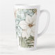 Tasse Latte Mariage Fleurs Blanches Bleues Tropicales