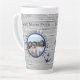 Tasse latte | Cadeau Parfait Fête des Mères. Meilleure Maman Jamais Grey Ancre marine nautique en bois gris. Doté d'une Ancre bleu marine avec un design de corde nautique, en bleu marine sur arrière - plan en bois bleu turquoise.
