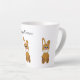 Trois mignons petits lapins de Pâques vous regardent de la surface de la Mug Latte, avec les mots "Bonne Pâques". Vous pouvez facilement remplacer les mots par des mots que vous préférez. Vous pouvez aussi facilement changer l'arrière - plan blanc en n'importe quelle couleur que vous voulez.