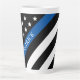 Montrez votre soutien avec cette mince tasse en latte de drapeau de police de ligne bleue. Cette conception comporte un drapeau de police noir et blanc avec une fine ligne bleue à un angle et un nom pour vous de personnaliser. Conçu par un artiste de renommée mondiale ©Tim Coffey.
