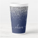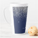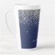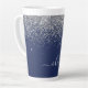 Parties scintillant à étincelle métallique de flûte bleu marine et argent Nom Monogramme Tasse de café en latte. Cela rend le cadeau parfait pour 16 ans, mariage, douche nuptiale, anniversaire, baby shower ou bachelorette pour quelqu'un qui aime le luxe glam et les styles chic.