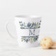 Tasse Latte Monogramme de la frontière Feuille en bleu d'Indig