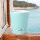 Monogramme de nom de script simple sarcelle bleu aqua Tasse à café Latte. C'est le cadeau parfait pour un anniversaire des 16 ans, un mariage, une douche de mariée, un anniversaire, une baby shower ou une soirée bachelorette pour quelqu'un qui aime le luxe glamour et les styles chics.