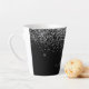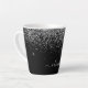 Tasse à café Latte avec monogramme en script pailleté noir et argenté. C'est le cadeau parfait pour un anniversaire sweet 16, un mariage, une douche de mariée, un anniversaire de mariage, une baby shower ou une soirée d'enterrement de vie de jeune fille pour quelqu'un qui aime le luxe glamour et les styles chics.