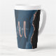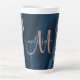 Tasse Latte Monogramme de script personnalisé Chic Blue Rose G