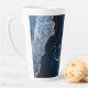 Prenez votre café du matin dans le style avec cette grande tasse en latte monogramme personnalisée élégante avec un arrière - plan d'agate bleu aux accents de parties scintillant en or rose. Personnalisez votre monogramme de script écrit à la main avec votre nom au-dessus au centre de la tasse. Un cadeau unique pour cette personne spéciale de votre vie. Conçu pour vous par ExtremeTees. Bon appétit !