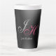Tasse Latte Monogramme gris noir Nom Lettres initiales Script