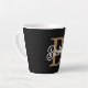 Tasse Latte Monogramme moderne élégant Nom Black Gold Script