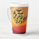 Des chauves-souris noires volantes aux airs de la flûte Kokopelli. Bouge de café Kokopelli Moon Sud-Ouest.Combinaison colorée d'Halloween vive que vous pouvez customiser. Les cultures amérindiennes de Kokopelli. Attribué à des aliens anciens ou à l'art tribal et inspiré de dessins rupestres et rupestres. Customisez vos styles de tasse à café amérindienne de style sud-ouest. Super idée cadeau Coupes Kokopelli à thème sud-ouest. Ou transférer la conception à un autre produit.