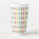 Moderne et élégant, la tasse en latte est ornée d'un motif en diamant de couleur pastel sur un arrière - plan blanc.
