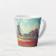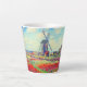 Latte Mug avec la peinture de la fleur et du moulin de Claude Monet. De beaux champs colorés de tulipes rouges, roses et jaunes à côté d'un moulin et d'une maison en Hollande. Un grand cadeau Monet pour les amateurs d'impressionnisme et d'art français.