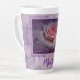 Donnez à votre mère cette belle "One of a Kind" Rose Rose Fête des Mères Latte Mug! Il présente une belle rose rose rose entourée de fleurs d'haleine de bébé...Niché dans un Arrière - plan pourpre et rose avec une bordure en dentelle! Art Graphique Original Par L'Artiste Kerry Miller