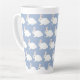 De mignons lapins blancs de lapin hop autour de cette tasse de latte. Idéal pour le printemps, Pâques ou tout amoureux du lapin ! Disponible en pêche, bleu ou vert.
