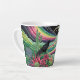 This latte mug features a sleek black crow—the eternal messenger—perched among desert blooms beneath a radiant, otherworldly night sky. Rainbow clouds arc toward distant planets, blurring the line between myth and science fiction.