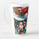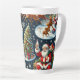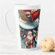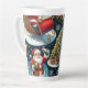 Père Noël Latte Mug Cette tasse de latte festive capture l'essence joyeuse du Père Noël et de Noël. Le décor est composé du Père Noël dans son emblématique costume rouge, tenant un sac de cadeaux, avec un sourire chaleureux et joyeux. Il est entouré de détails ludiques comme des sucres de canne, des cloches dorées et des feuilles saints. L'arrière - plan présente une scène de village enneigé, avec des lumières scintillantes et des cottages confortables, sous un ciel étoilé étoilé. La poignée est formée d'une courbe subtile et décorée d'un motif de sucre de canne rouge et blanc. L'intérieur de la tasse présente un détail surprenant, un tout petit chapeau de Père Noël à la base. La jante est bordée d'un accent doré chatoyant, ajoutant une touche d'élégance au design festif. Un choix enchanteur pour les vacances en famille ou les cadeaux aux passionnés de Père Noël !
