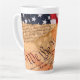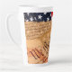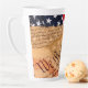 Commencez ou terminez votre journée patriotique avec cette tasse en latte durable avec la Constitution de Nous le Peuple et le drapeau américain dans l'arrière - plan. La couleur de l'image peut varier sur différents écrans de visualisation.
