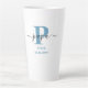Tasse Latte Papa Élégant Script Monogramme Bleu Blanc Latte Mu