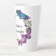 Tasse Latte Papillon et fleurs Guillemet ou nom personnalisé W