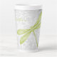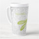 Profitez de votre café du matin ou du soir avec une tasse de latte personnalisée en laine de libellule verte. Le design de la motte est composé d'une libellule colorée, d'une vigne feuillue blanche molle contre un arrière - plan damassé gris clair avec une zone à personnaliser avec votre nom. Autres cadeaux disponibles avec ce design ainsi qu'une variété de couleurs.