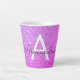 Parties scintillant étincelante violet et rose de luxe Fille Chic Monogramme Nom et latte initiale café ou tasse de thé. La tasse monogrammée fait la Fête des mariées parfaite, Bachelorette Party, Sweet 16 Anniversaire ou cadeau de Noël pour quelqu'un qui aime l'or rose.