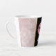 Tasse en latte personnalisée avec un arrière - plan composé d'un motif feuille moderne et tendance en or rose tropical. Le dessus est recouvert d'un cadre noir avec une bordure dorée, à l'intérieur sont des lèvres de loterie rose.