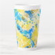 Dispose de plaques de peinture aléatoires en bleu et jaune.