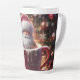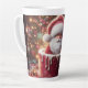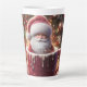 Une image charmante et fantaisiste représentant un Père Noël miniature niché à l'intérieur d'une tasse géante et vapeur de cacao chaud. La tasse est ornée de délicats flocons de neige et dégouline de bonté crémeuse. Père Noël, avec ses joues roses et ses yeux scintillants, se détache de la chaleur, entourée de la douce lueur des lumières de Noël et des décorations festives.