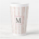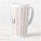 Tasse Latte Pink White Snowflakes Stripes Monogram
