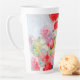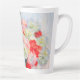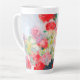 Tasse de latte avec une peinture de fleurs de Claude Monet. De belles pivoines rouges, jaunes et blanches dans un vase bleu. Un beau cadeau de Monet pour les amateurs d'impressionnisme et d'art français.