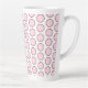 Cette grande tasse en latte est montrée avec un imprimé pois marron et rose mignon. Customisez cet objet ou achetez tel quel.