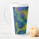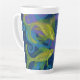 Tasse en latte ornée d'une peinture colorée, trois poissons jaunes dorés dans l'eau bleue, violet, parfum turquoise et jaune et bulles. © Julia Khoroshikh www.juliakhoroshikh.art #nautical #underwaterartn #fish art #fish paint #pastelpaint #underwater #coffeemugs #zazzlemade