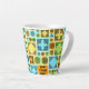 Une tasse en latte audacieuse à motifs avec une légende amusante pour un amateur de thé ou de café. Utilisez "Personnalisez ce modèle" pour modifier le texte "First Things First Things First Tea Break!", si vous le souhaitez. Occupé avec des carreaux décoratifs de différentes tailles et motifs variés. Des motifs noirs sur des arrière - plans orange, vert, bleu et jaune défraîchis. Tous les motifs ont été dessinés et dessinés par moi et sont inspirés par le design celtique et islamique.