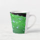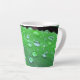 L'oeuvre de cette Mug en latte verte est une photo de closeup originale de ZoeSPEAK de gouttes de pluie sur une façade de palmier de Manilla. La façade verte est courbée, nous donnant des vues des gouttelettes d'eau verte de l'espace sous différents angles. En haut de la courbe, nous voyons un horizon de gouttes de pluie contre l'arrière - plan sombre. À mesure que la fronde tourne autour, les gouttelettes ont des reflets lumineux, et deviennent plus petites vers le dessous dans l'ombre.