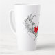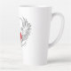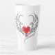 Coeur rouge peint de façon artistique avec ailes d'ange gris, décoré de contour lisse noir.