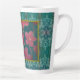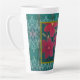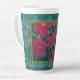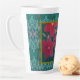 Bright red flowers are presented on lovely aqua-flowered background, a nice example of mixed-media artwork.