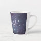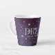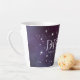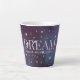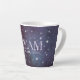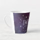 Tasse en latte avec les mots inspirants "rêve, imaginez, croyez, créez" en lettres majuscules violettes pastel dressées contre un ciel étoilé au milieu des nuages poussiéreux de violet et de nébuleuse bleue. Mystique et magique comme le royaume mystérieux des rêves. Utilisez le modèle de texte pour ajouter un nom, des mots habilitants ou une citation inspirante. ♡ Idyllfire