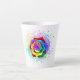 Grand rose fleuri avec pétales arc-en-ciel sur arrière - plan blanc, peint sur des éclaboussures de peinture colorée et lumineuse. 3d