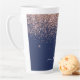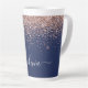 Tasse Latte Rose Gold Paillet Blush Rose Monogram Bleu Marine