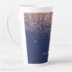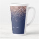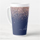 Bleu Nuit et Rose Gold - Rose Pâle Faux Feuille Métalisé Paillettes Étincelantes Monogramme Nom Latte Café Tasse Mug. C'est le cadeau idéal pour un sweet 16, un mariage, une douche de mariée, un anniversaire de mariage, une baby shower ou une soirée entre filles pour quelqu'un qui aime le luxe et les styles chics.
