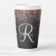 Personnalisez facilement ce design élégant de tasse en latte avec une jolie parties scintillant brillante en or rose sur un arrière - plan métallique brossé noir.