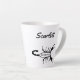Cette énorme tasse en latte présente une image d'art numérique d'un scorpion noir avec de grandes griffes et une grande piqûre sur la queue courbée au-dessus du haut de son corps, avec le mot Scorpio en texte noir gras dans le corps de l'arachnid. Un design amusant pour les gens célébrant un anniversaire né entre le 24 octobre et le 21 novembre sous le signe étoilé de Scorpio. Il y a du texte personnalisé pour que vous puissiez inclure un nom.