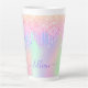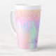 Tasse Latte Script de nom des gouttes rose holographique