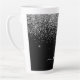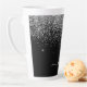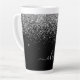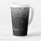 Parties scintillant à étincelles métalliques noir et argent Nom du monogramme Tasse de café en latte . Cela rend le cadeau parfait pour 16 ans, mariage, douche nuptiale, anniversaire, baby shower ou bachelorette pour quelqu'un qui aime le luxe glam et les styles chic.