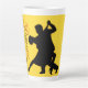 Silhouette noire du couple de danse tango de salle de bal avec texte sur arrière - plan jaune